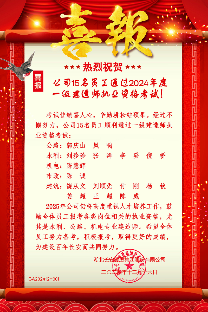 熱烈祝賀集團公司15名員工考取一級建造師!