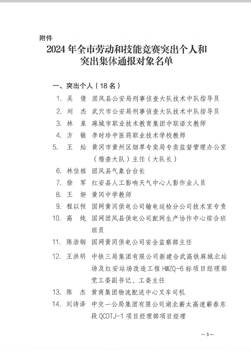 3月5日,黃岡市總工會發(fā)布《關(guān)于2024年全市勞動和技能競賽突出個人和突出集體的通報(bào)》,對在2024年勞動和技能競賽中表現(xiàn)突出的18位個人和5個集體進(jìn)行通報(bào)表揚(yáng)。集團(tuán)公司“黃岡職業(yè)技術(shù)學(xué)院新校區(qū)擴(kuò)建項(xiàng)目(一期)EPC項(xiàng)目部”被評為“突出集體”,同時認(rèn)定為“黃岡市工人先鋒號”。