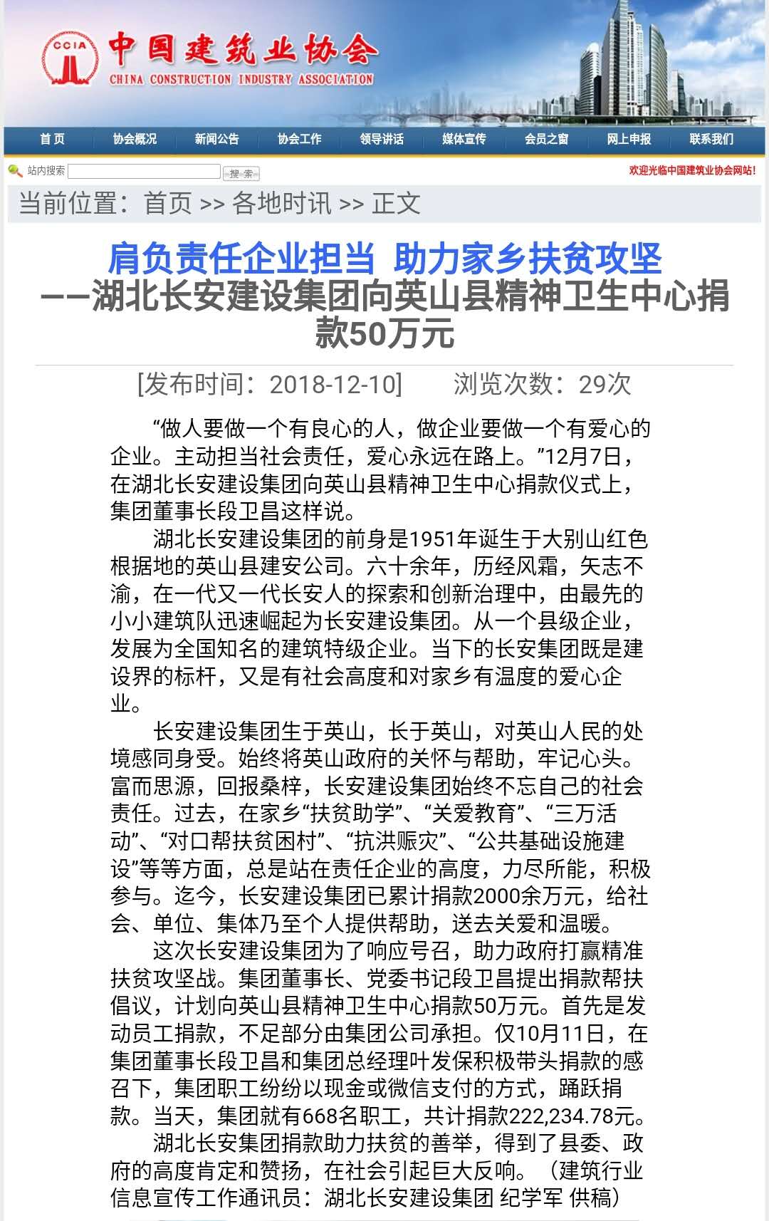 湖北長(zhǎng)安建設(shè)集團(tuán)向英山縣精神衛(wèi)生中心捐款50萬(wàn)元