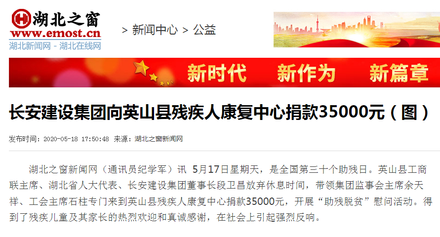 長安建設(shè)集團(tuán)向英山縣殘疾人康復(fù)中心捐款35000元