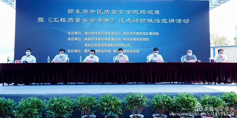 6月24日上午,端午節(jié)前夕。在省住建廳的精心組織下,由黃岡市住建局、麻城市住建局協(xié)辦,長(zhǎng)安建設(shè)集團(tuán)承辦的鄂東南片區(qū)質(zhì)量安全現(xiàn)場(chǎng)觀摩暨《工程質(zhì)量安全手冊(cè)》試點(diǎn)經(jīng)驗(yàn)做法推廣宣講活動(dòng)在麻城市委黨校遷建項(xiàng)目施工現(xiàn)場(chǎng)舉行。本次活動(dòng)旨在交流共享工程質(zhì)量安全管理標(biāo)準(zhǔn)化成果,全面推廣《工程質(zhì)量安全手冊(cè)》試點(diǎn)經(jīng)驗(yàn)做法,促進(jìn)區(qū)域質(zhì)量安全協(xié)同發(fā)展。省住建廳、省質(zhì)安總站、黃岡住建局、咸寧住建局、鄂州住建局、麻城住建局、中共麻城市委黨校、英山住建局、長(zhǎng)安建設(shè)集團(tuán)等領(lǐng)導(dǎo)出席本次活動(dòng)。黃岡市住建局黨組成員、總工劉俊主持會(huì)議。