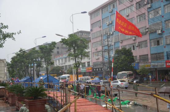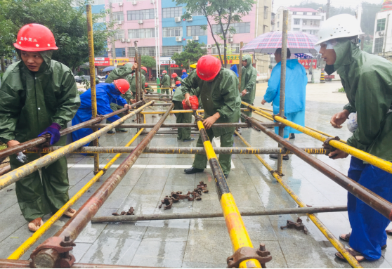 “我們絕對保證不讓任何一個考生因暴雨影響和洪災阻隔而進不了考場。長安建設集團有信心有能力鋪平坎坷路,搭建‘防洪橋’,天涯變咫尺。”7月6日12時許,在英山縣委、縣政府的領導下,在時間緊、任務重、天氣惡劣的環(huán)境中,湖北長安建設集團董事長段衛(wèi)昌顧不上吃飯,迅速成立“抗擊洪災,保障高考”先鋒突擊隊,現場部署敦促搶建“防洪橋”。集團總經理葉發(fā)保親自調度指揮,協調鋼管、模板、腳手架等搭橋必需物資。后勤各部門一切行動聽指揮,全力為“防洪橋”提供保障。短短一個小時,集團各項目基地100余人迅速在畢昇大橋集結,冒著傾盆大雨積極投入到突擊隊伍中。