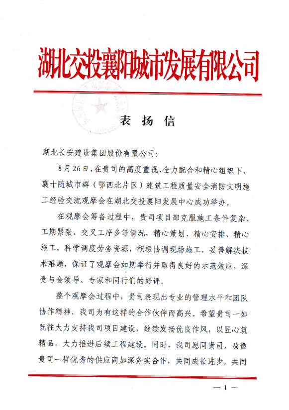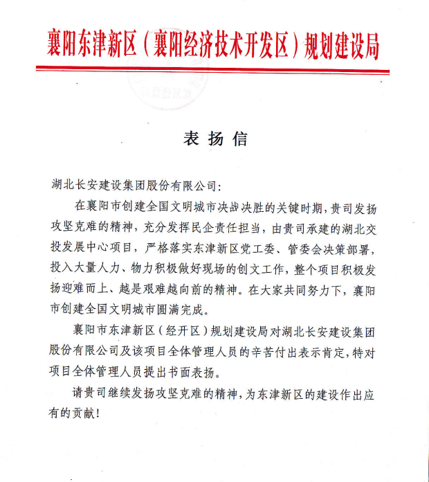 湖北交投襄陽發(fā)展中心項目:擔責任 創(chuàng)佳績 受表揚
