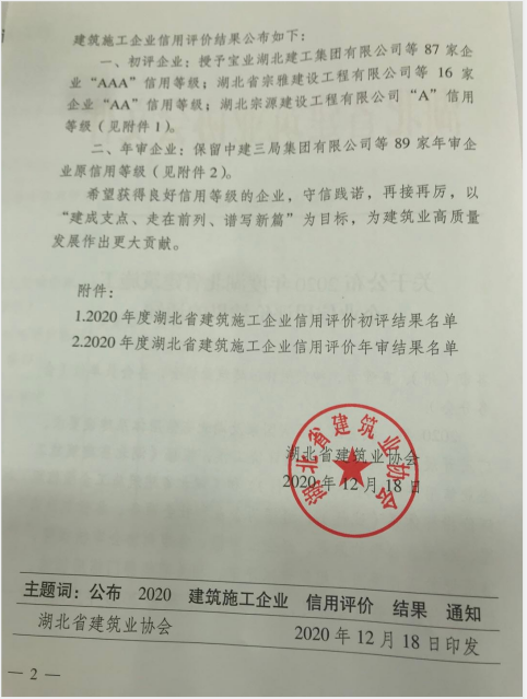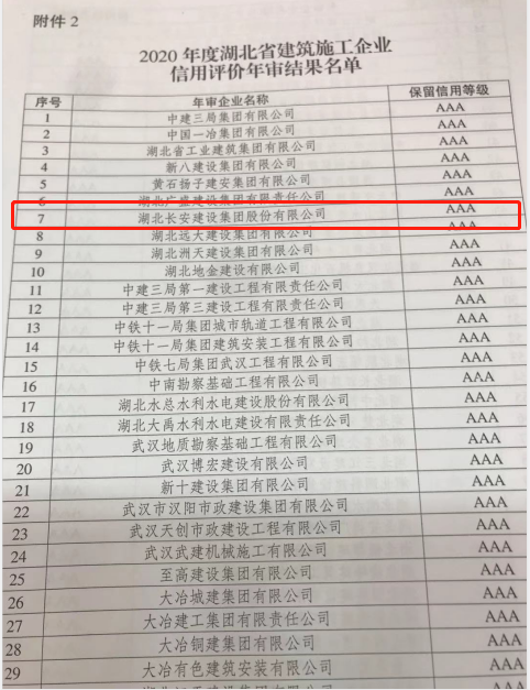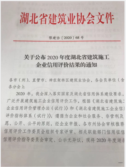熱烈祝賀集團(tuán)通過2020年度湖北省建筑施工企業(yè)AAA信用復(fù)審