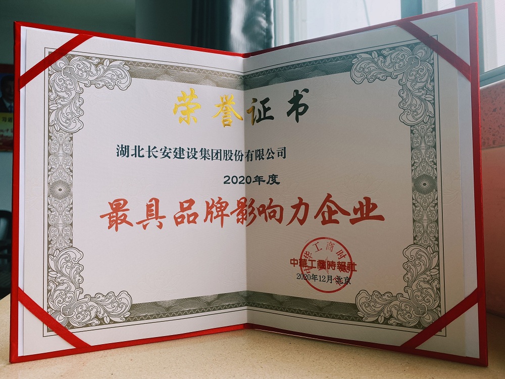 這是湖北長安建設(shè)集團(tuán)股份有限公司第一次獲此殊榮,也是湖北省唯一榮獲“2020年度最具品牌影響力企業(yè)”稱號(hào)的民營企業(yè)。