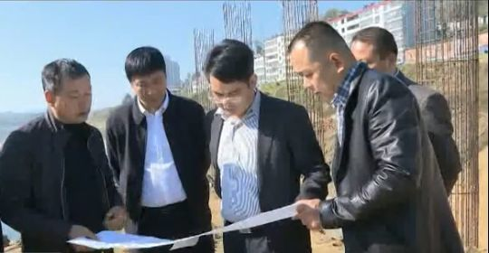 2018年11月1日,英山縣委書記陳武斌(中)一行視察長安大橋建設(shè)項(xiàng)目